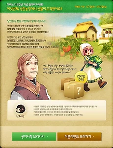 전체 글52 마비노기 8주년 기념 릴레이 이벤트 - 7주차 이리아 뗏목&와인 농장 이벤트 이벤트 기간 동안 라테르 고산지 똇목에서 별 1개 이상을 얻으면 이벤트에 응모된다. 던바튼 교역소의 임프 누누와 대화하여 '와인 서비스 개시'라는 퀘스트를 깨면 이벤트에 응모된다. 이제는 와인 숙성을 할때 양조장에 직접 가지 않고 스킬을 사용해서도 만들 수 있다. 와인 숙성은 보상을 좀 더 좋은 걸 주면 활성화가 되지 않을까 싶다. 2012. 6. 14. 마비노기 8주년 기념 릴레이 이벤트 - 6주차 낭만농장에서 선물이 도착했어요!! 무엇을 보내줄지 정말 궁금하다. 낭만농장이라면 농산물인데 마비노기는 보통 마비노기에 관련된 소품을 보내주니까 짐작이 안간다. 2012. 6. 8. 마비노기 염색 앰플 4종 한정 판매 [염색 앰플 4종 한정 판매] 염색이 어려웠던 일부 아이템에 다양한 색상을 염색해 볼 수 있는 특별한 기회!! 한정 기간 동안만 만나볼 수 있는 염색 앰플 4종을 놓치지 마세요!! 한정 판매 기간 : 5/31(목) ~ 6/24(일) * 참고사항 - 염색 앰플 4종은 거래 불가한 상품입니다. - 각 아이템을 사용하여 획득한 염색 앰플은 거래 가능합니다. - '스페셜 악기 염색 앰플'과 '스페셜 금속 염색 앰플'은 룰렛을 최대 2회까지 돌릴 수 있습니다. 이건 비싼 키트나 마찬가지인 것 같다.. 저번에 키트에서 스페셜 금속 염색 앰플을 줘서 룰렛을 돌려봤는데 아슬아슬하게 똥색이 되서 또 그렇게 될까봐 무서워서 안사야겠다 ㅜㅜ 2012. 5. 31. 마비노기 8주년 기념 릴레이 이벤트 - 5주차 패션 컨테스트&패밀리 이벤트 패션 컨테스트 이벤트는 매일 오후 8시에 시작하는 패션 컨테스트 예선, 본선에 참가하거나 본선을 관람하면 된다. 그리고 이번 이벤트를 계기로 패션 컨테스트를 리뉴얼 했다. 본선에서 우승을 하면 패션 컨테스트 의상 상자도 주고 관람만 해도 패션 컨테스트 스타도 준다. 2012. 5. 31. 이전 1 2 3 4 5 ··· 13 다음